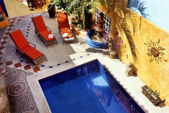 All rooms are lovely decorated in traditional Mexican style with carved wooden furniture and features and count with ceiling fans,aircondition and cable TV.